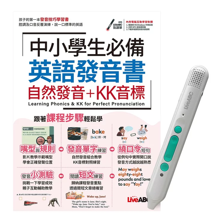 | 品名 | 中小學生必備 英語發音書自然發音 + KK音標 + LiveABC 智慧藍牙點讀筆 16G |