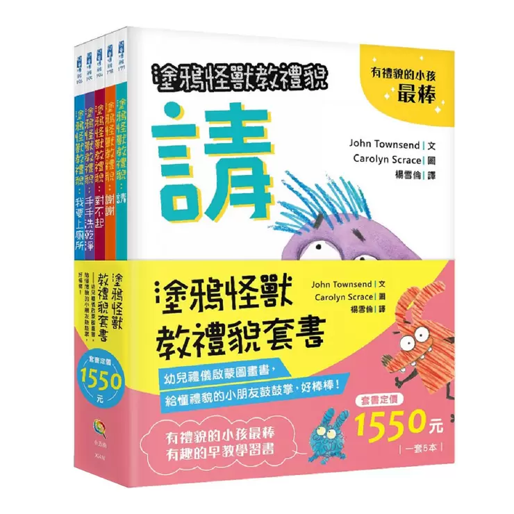 | 品名 | 塗鴉怪獸教禮貌套書: 幼兒禮儀啟蒙圖畫書,給懂禮貌的小朋友鼓鼓掌,好棒棒 (5冊合售) |