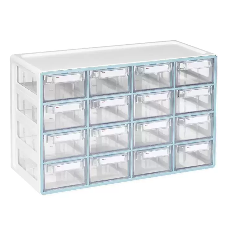- 共16格透明抽屜,附16件隔板,可依喜好將每格抽屜做間隔並分門別類