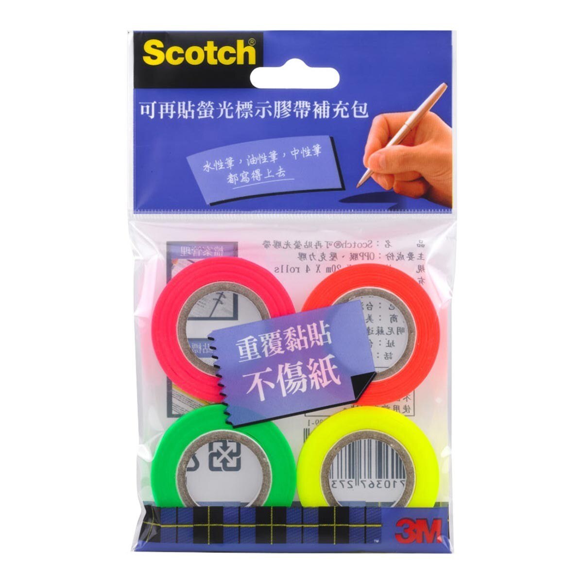 3M Scotch 可再貼四色螢光標示膠帶補充包 4入 812R4