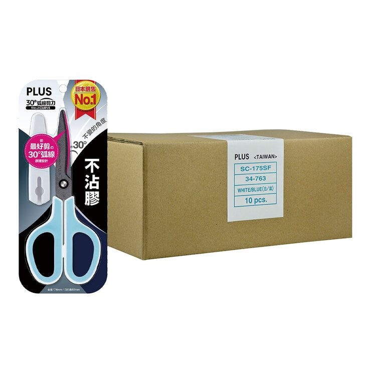| 品名 | PLUS 30 度弧線不沾膠剪刀 10入 |