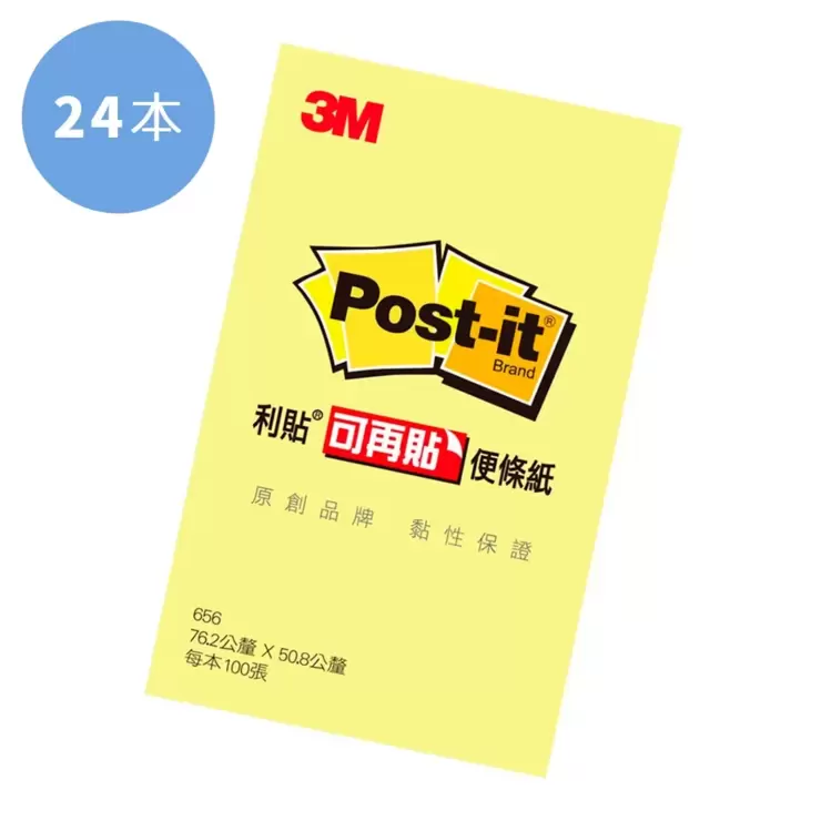 | 品名 | 3M Post-it 可再貼便條紙黃色 50.8公釐 X 76.2公釐 X 24本 656-1 |