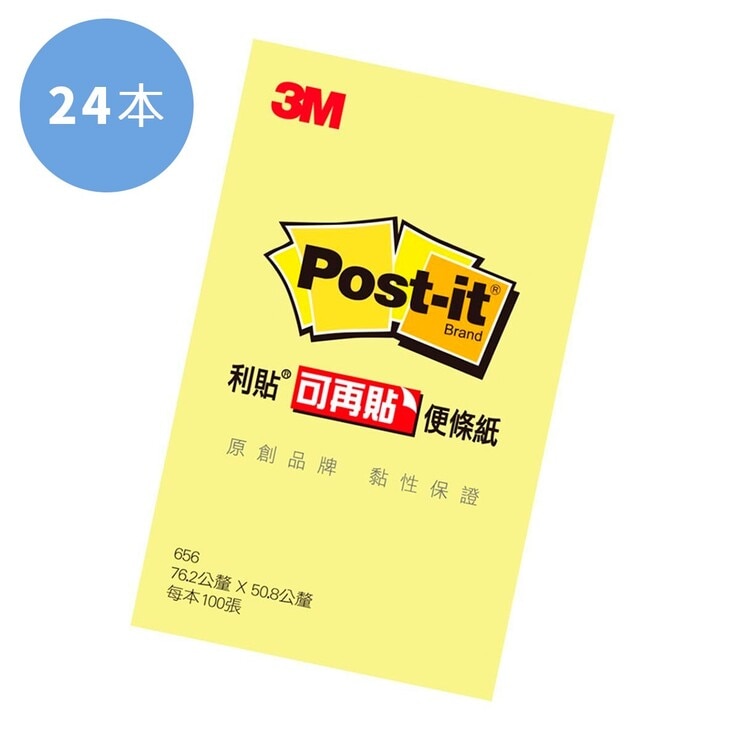 3M Post-it 可再貼便條紙黃色 50.8公釐 X 76.2公釐 X 24本 656-1