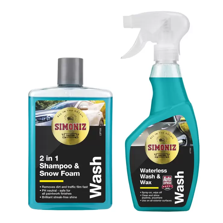 Simoniz 2 in 1 Shampoo and Snow Foam 475 ml X 1-Pack + Simoniz Waterless Wash & Wax 500 ml X 1-Pack