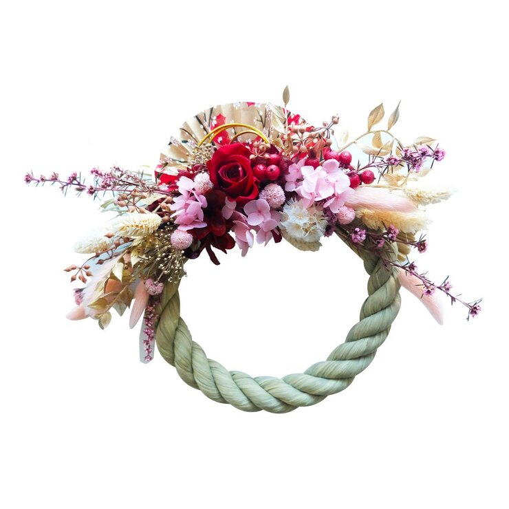 ※花材: 結繩、紅玫永生花、永生乾燥花、紙花、金繩
