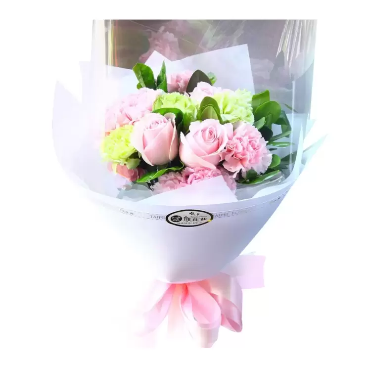 | 內容物 | 內含花材: 綠桔梗 3朵 粉玫瑰 5朵 粉康乃馨 3朵 茉莉葉 少許 |
