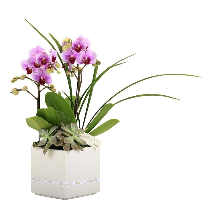| 內容物 | 內含花材: 粉色蘭花 2株 多肉植栽 2株 國蘭 1株 特級水苔 |