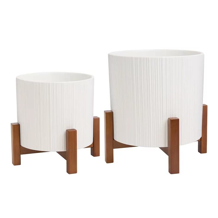 Ceramic Planter 2-Piece Set with Bamboo Stand