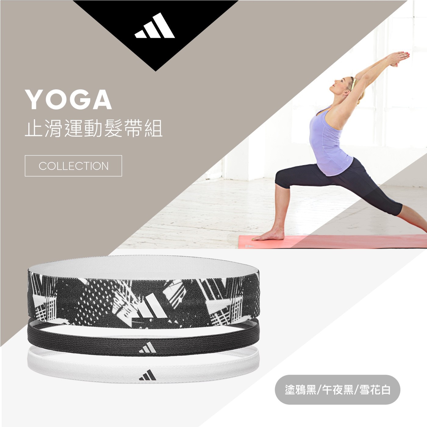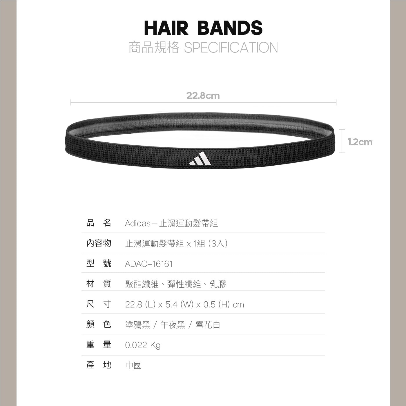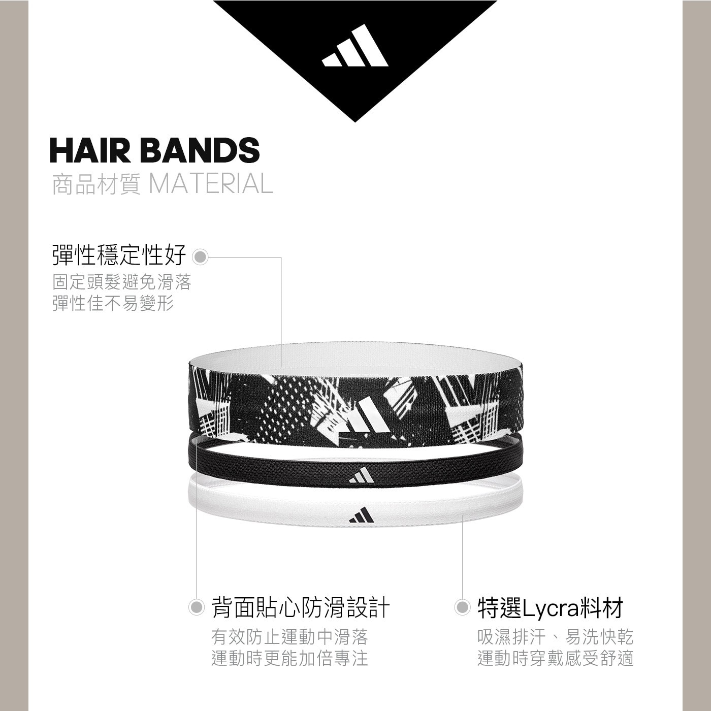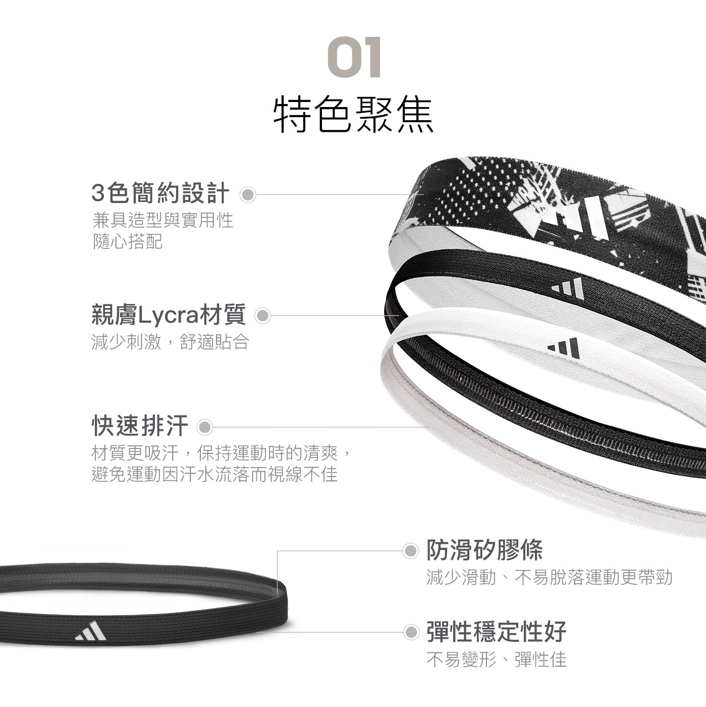 | 品名 | Adidas 止滑運動髮帶組 塗鴉黑+午夜黑+雪花白 |