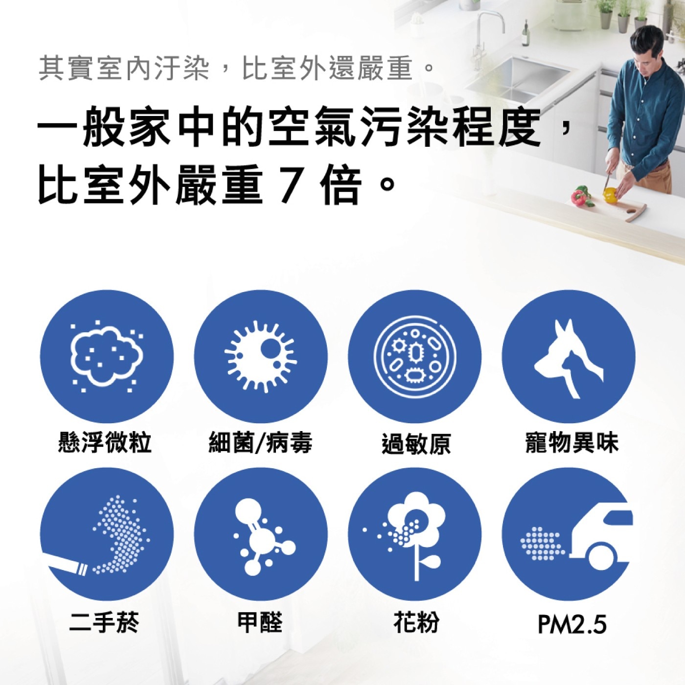 - 可淨化 99.95% 小至 PM0.1 的微粒。