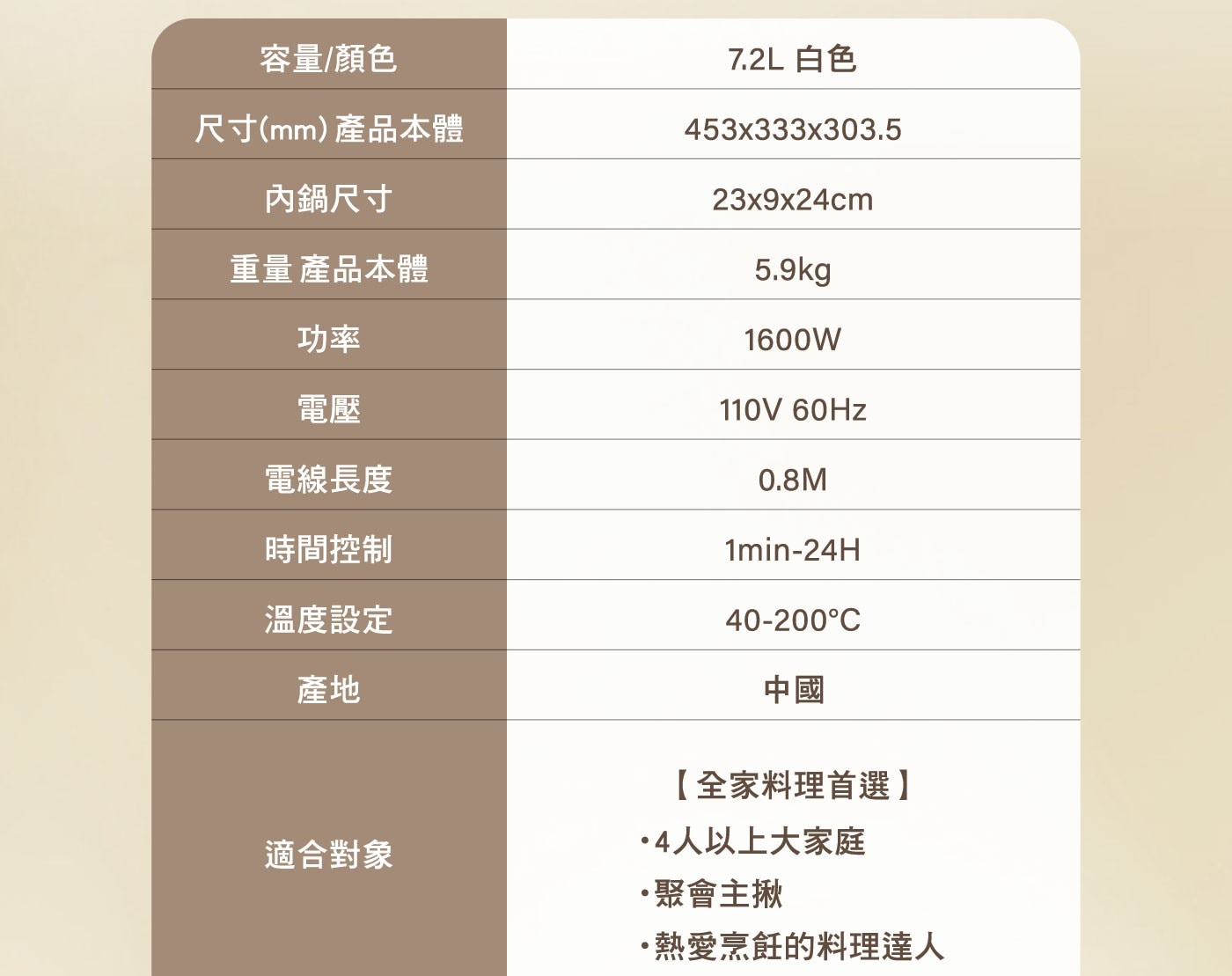 | 商品容量 | 7.2公升 |