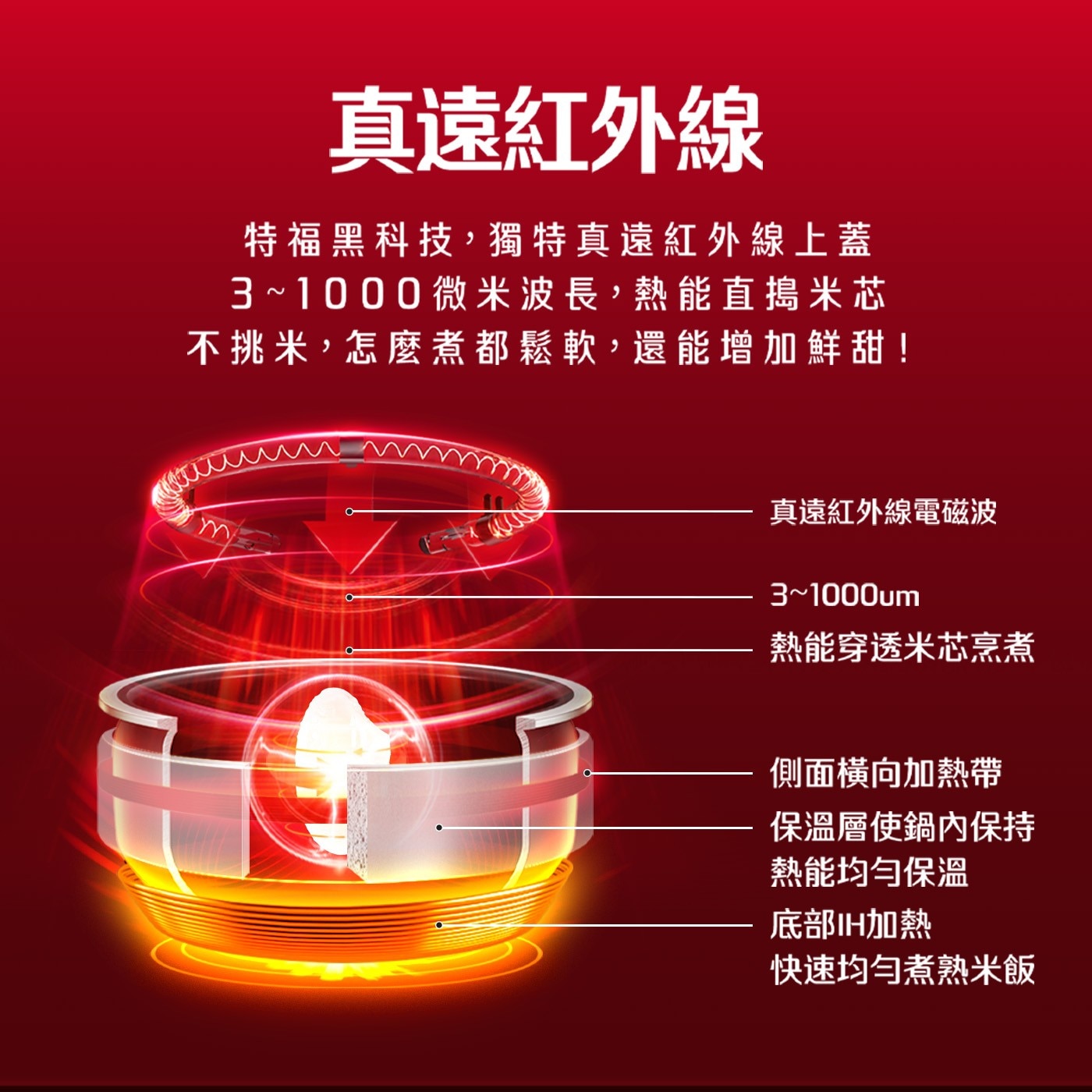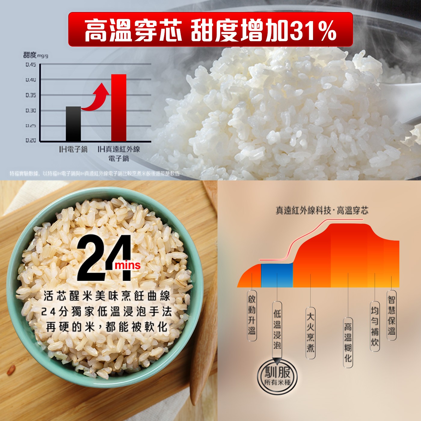 - 真遠紅外線科技,3~1000微米波長,熱能直搗米芯,真遠紅外線科技甜度增加31%