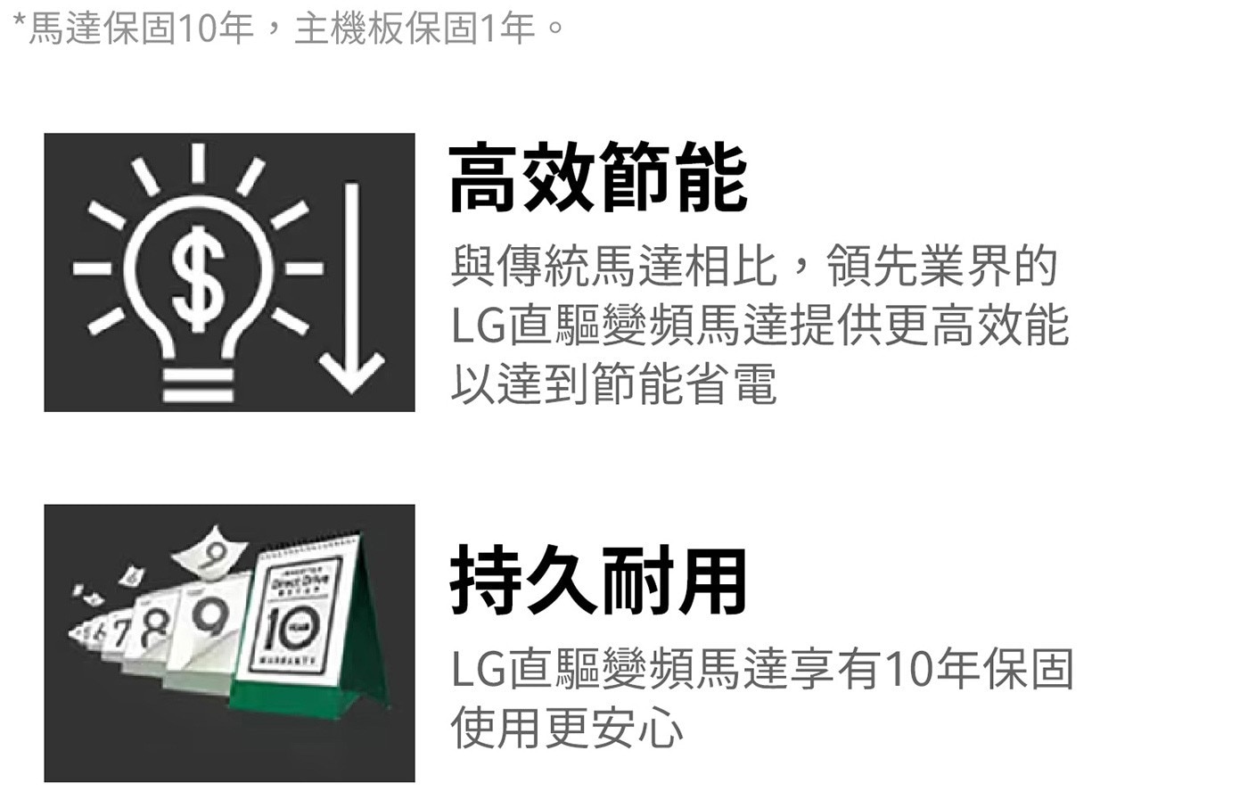 直驅變頻馬達 低噪耐用更省電 10年保固