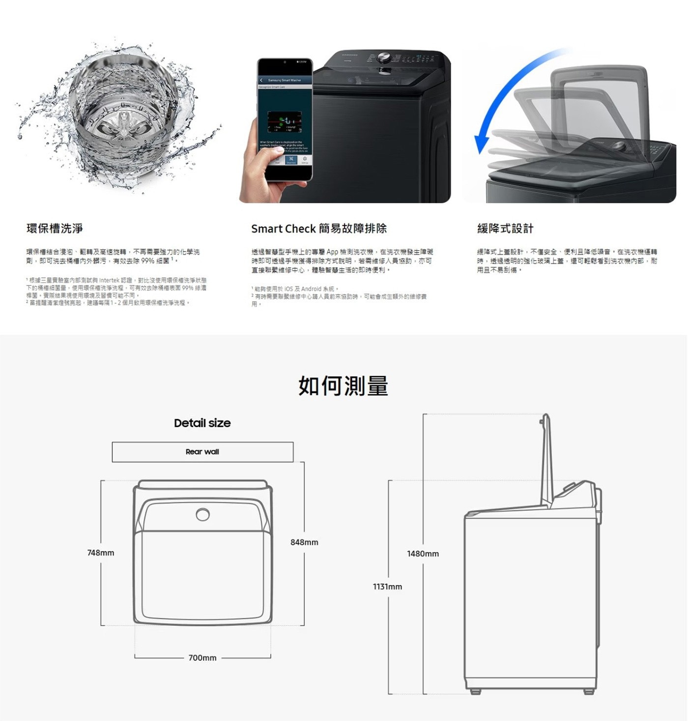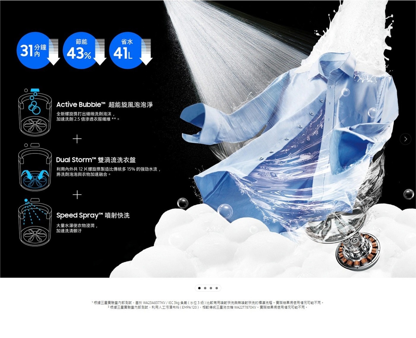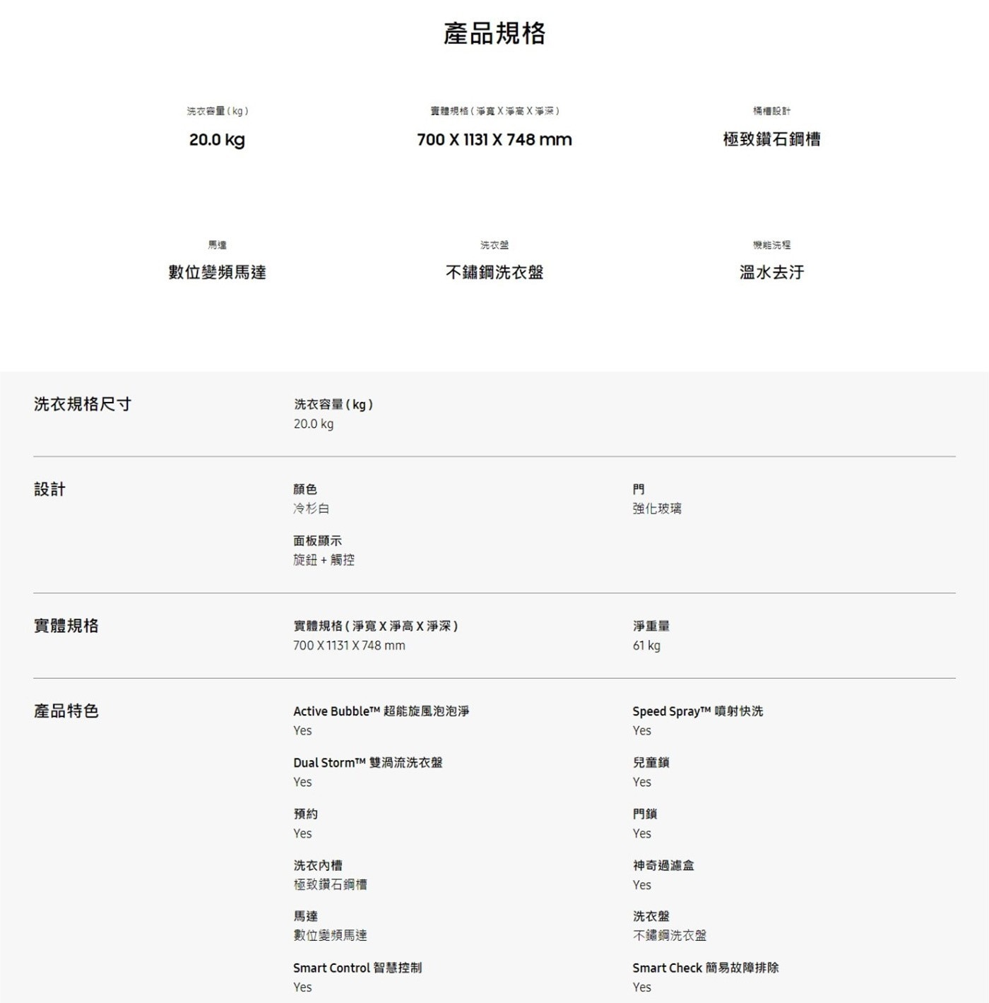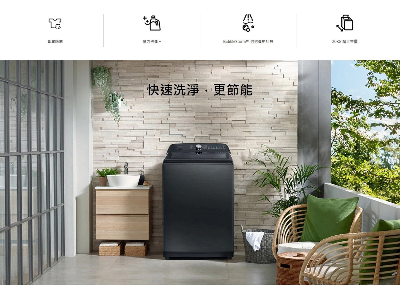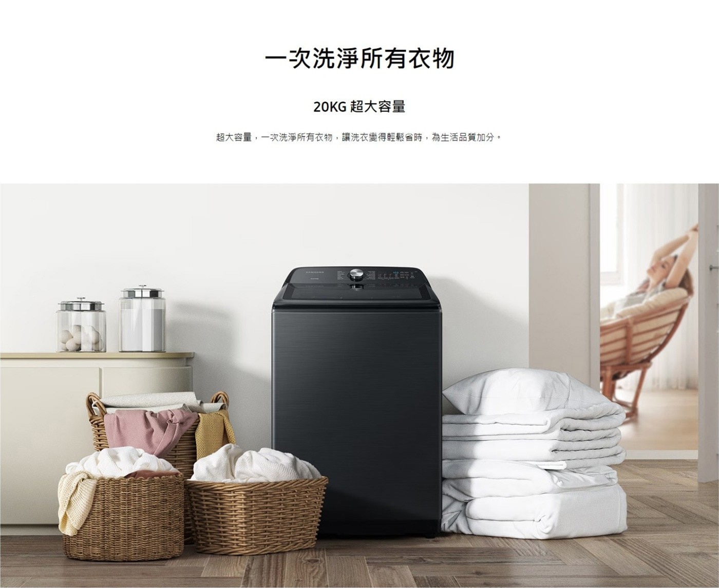 Samsung 20公斤 直立式變頻洗衣機 WA20A8377GW/TW