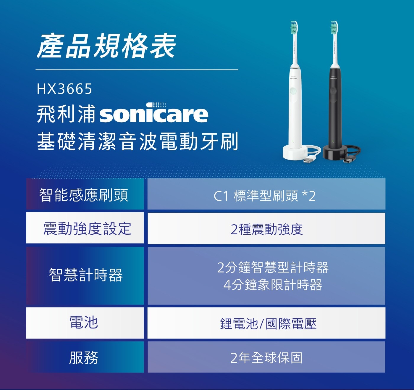 飛利浦 Sonicare 充電式智能音波牙刷 2入 HX3665飛利浦 Sonicare 充電式智能音波牙刷 2入 HX3665