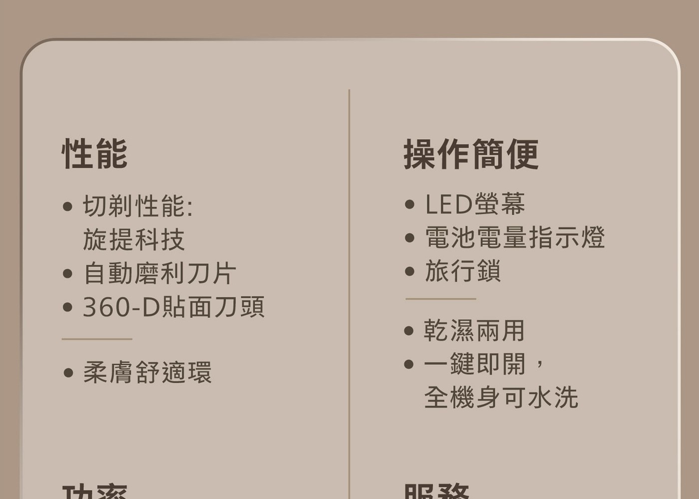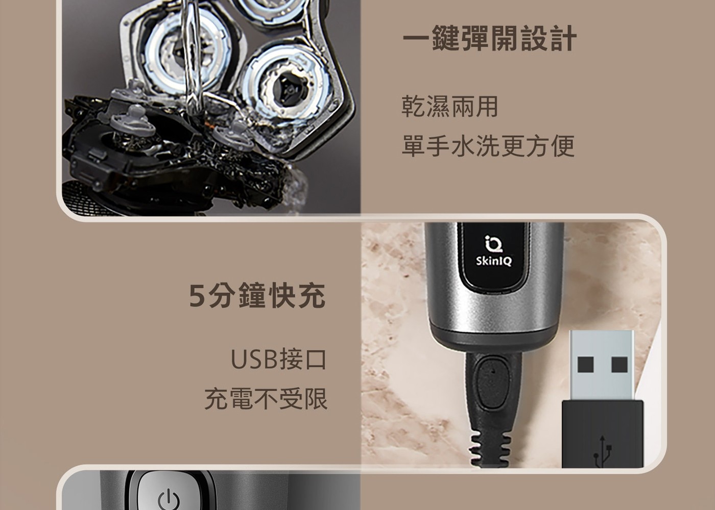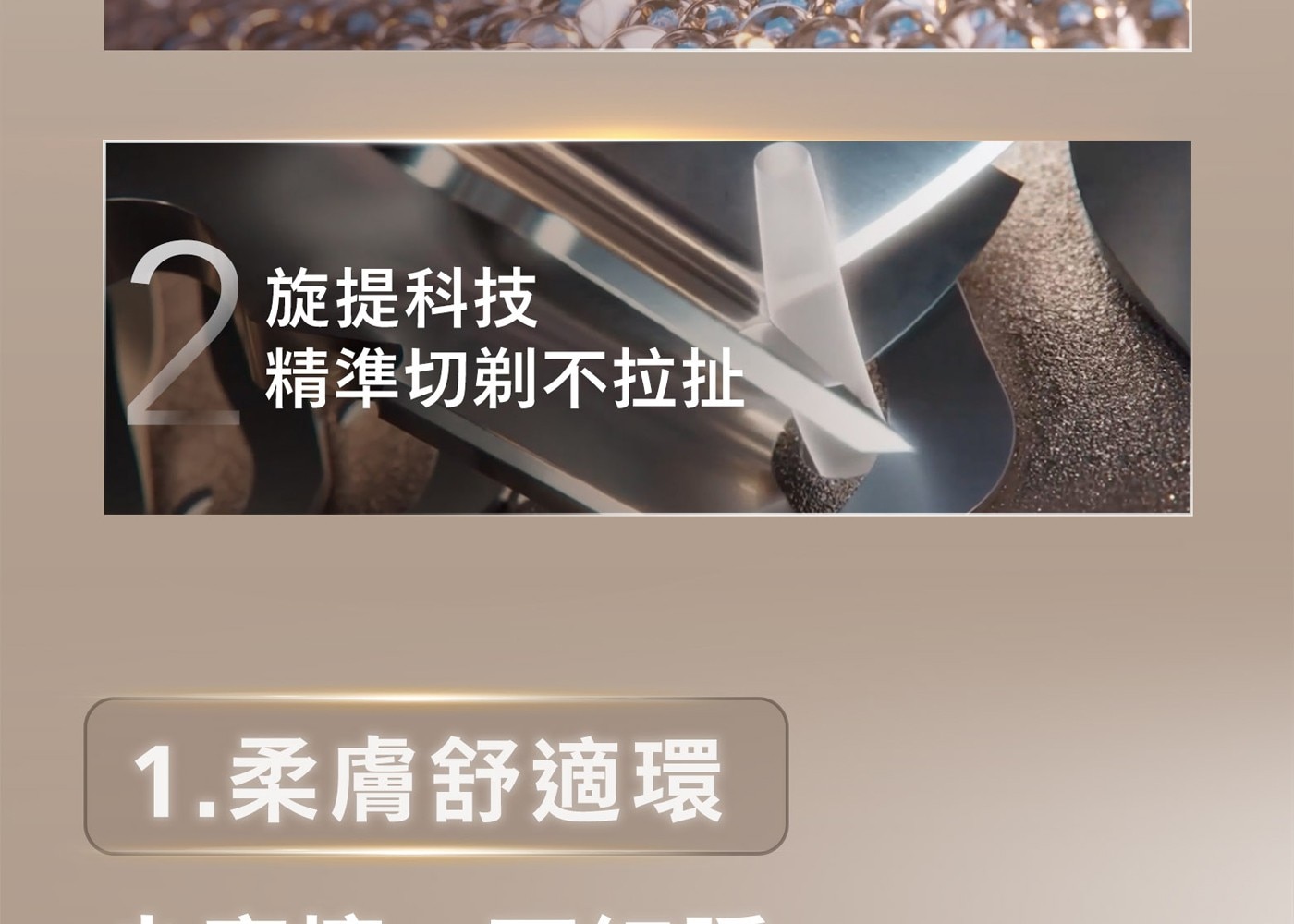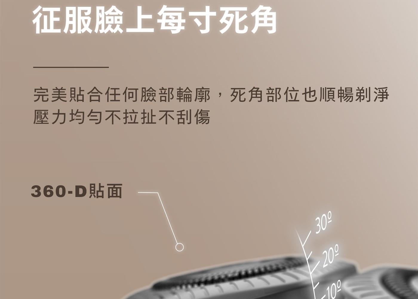 - 360D多動向三刀頭,完美貼合臉部輪廓