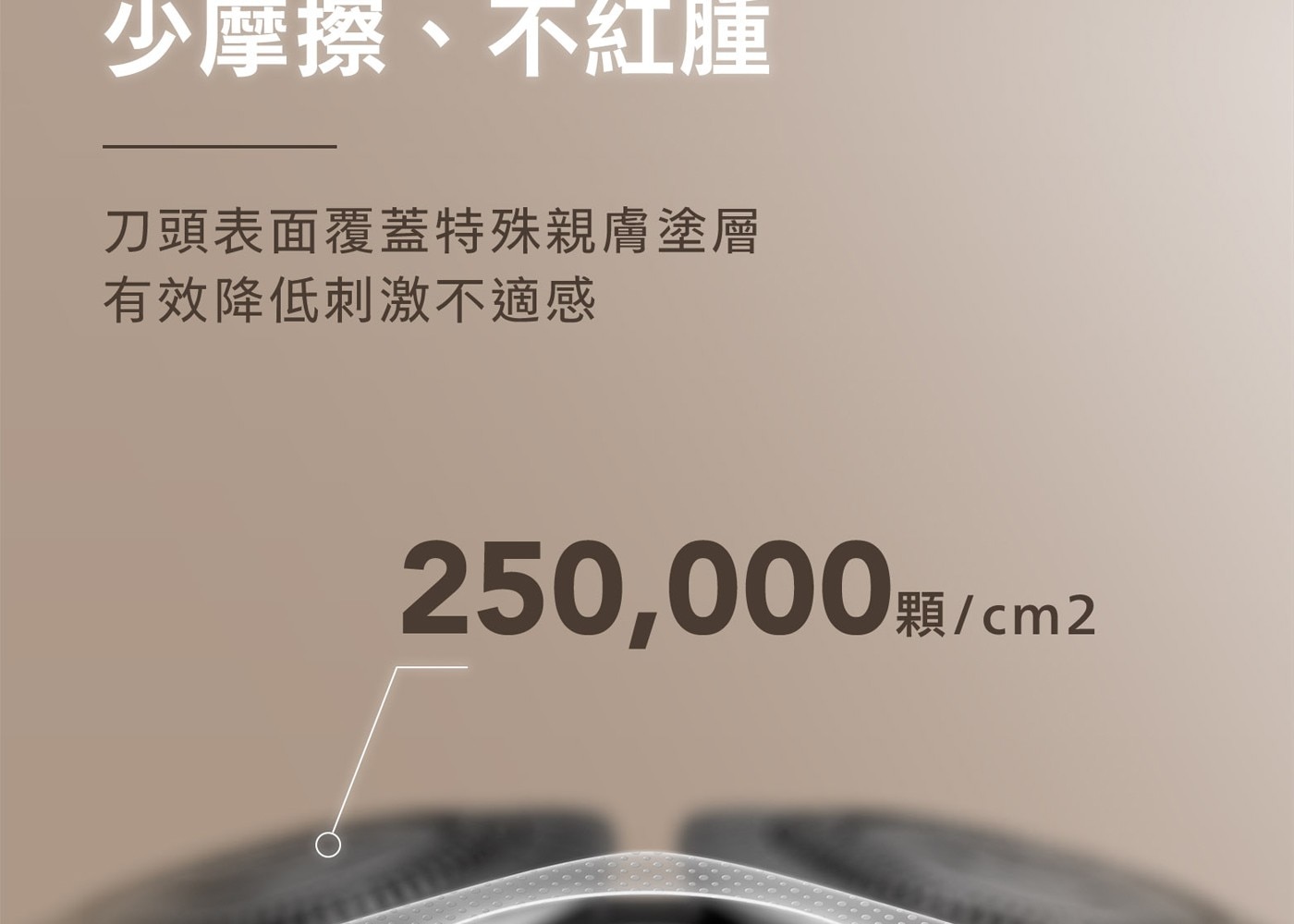 - 單軌V型刀網,每分鐘700萬次高效切剃