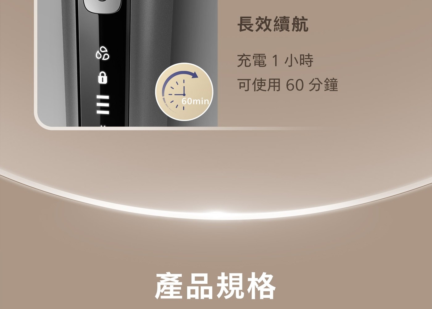 - 充電時間1小時,可供使用時間60分鐘