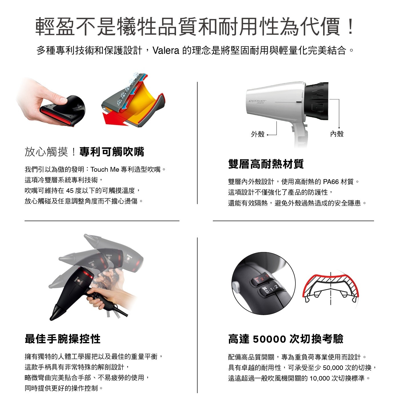 注意事項 | 1. 僅限台灣110V電壓使用 2. 請勿將電源線區捲與纏繞在吹風機上或彎折電線及拉扯插頭 |