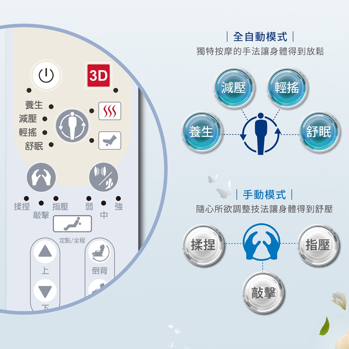 使用方式 | 肩頸腰臀3D深度按摩 結合小腿氣壓及滾輪的多種按摩手感徹底釋放腿部疲勞 |