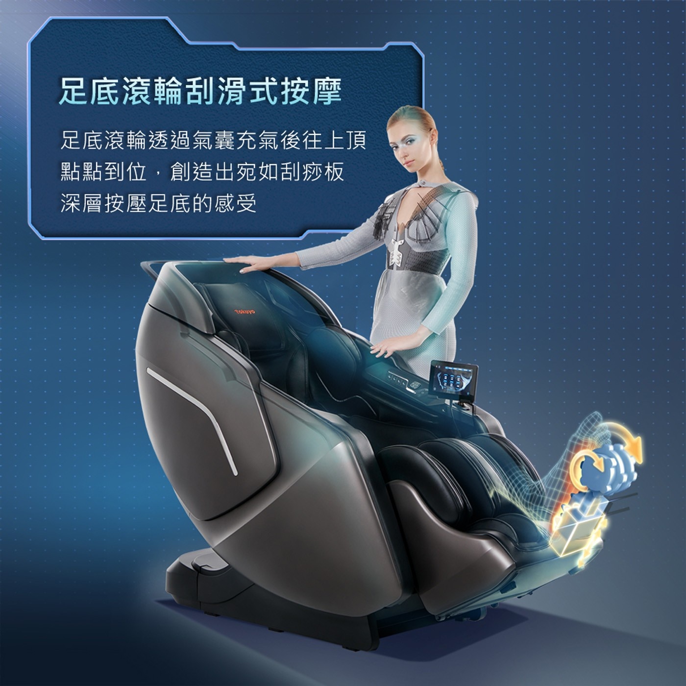 使用方式 | 足底滾輪刮滑式按摩 結合小腿氣壓及滾輪的多種按摩手感徹底釋放腿部疲勞 |