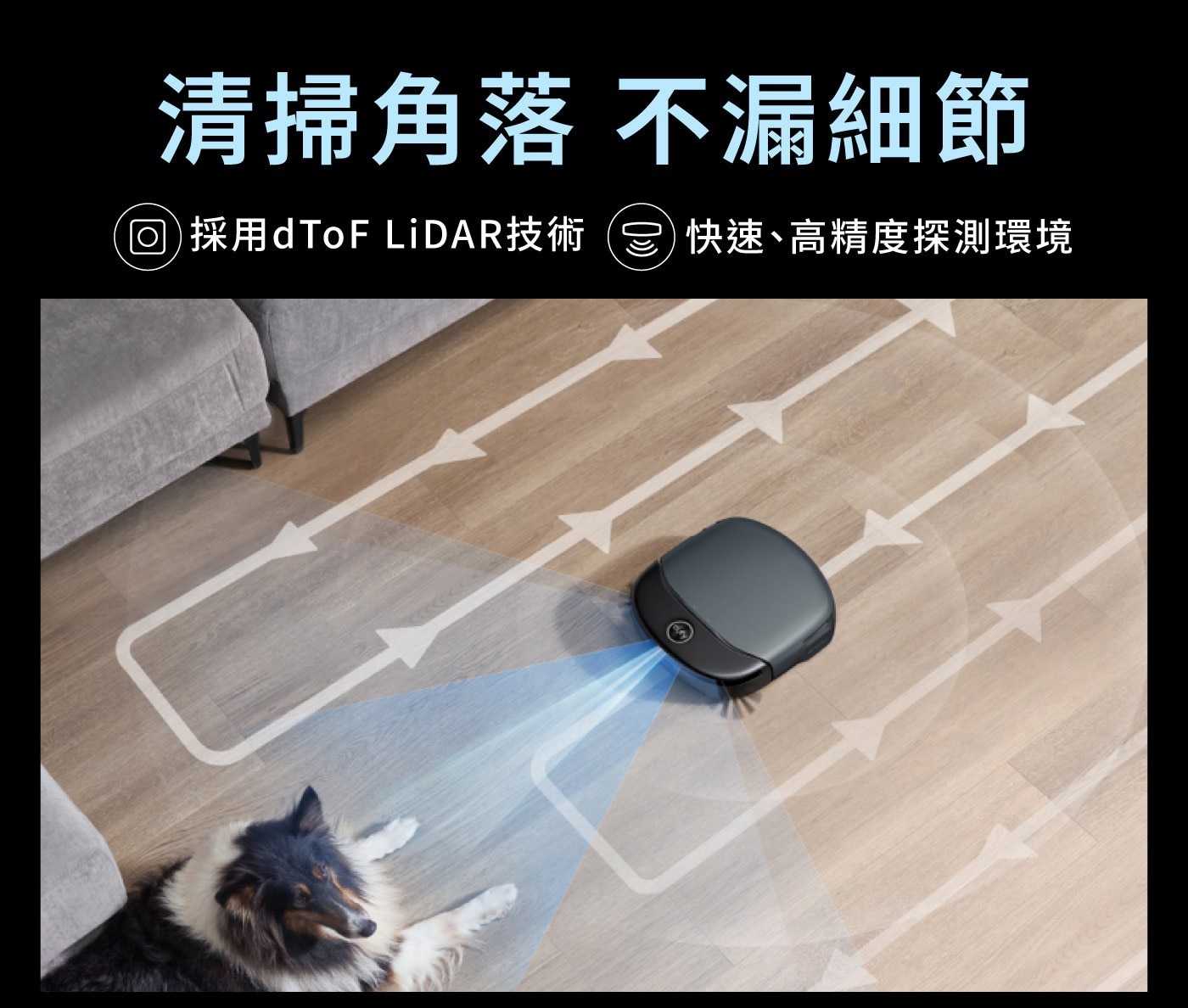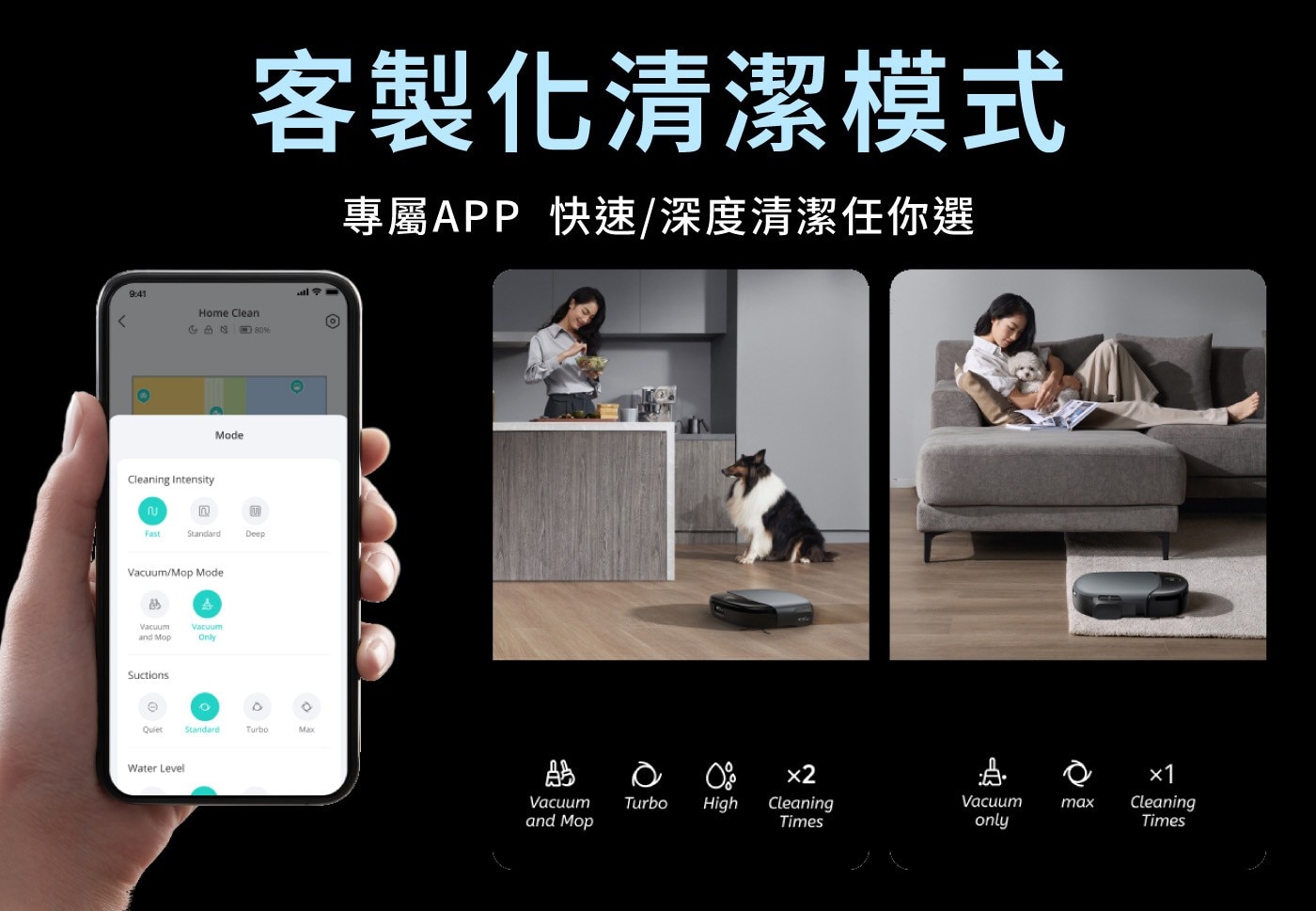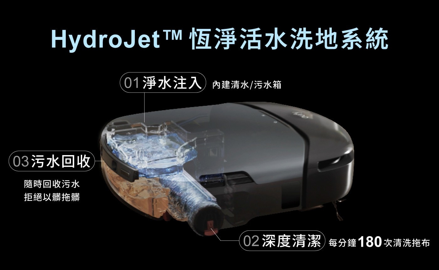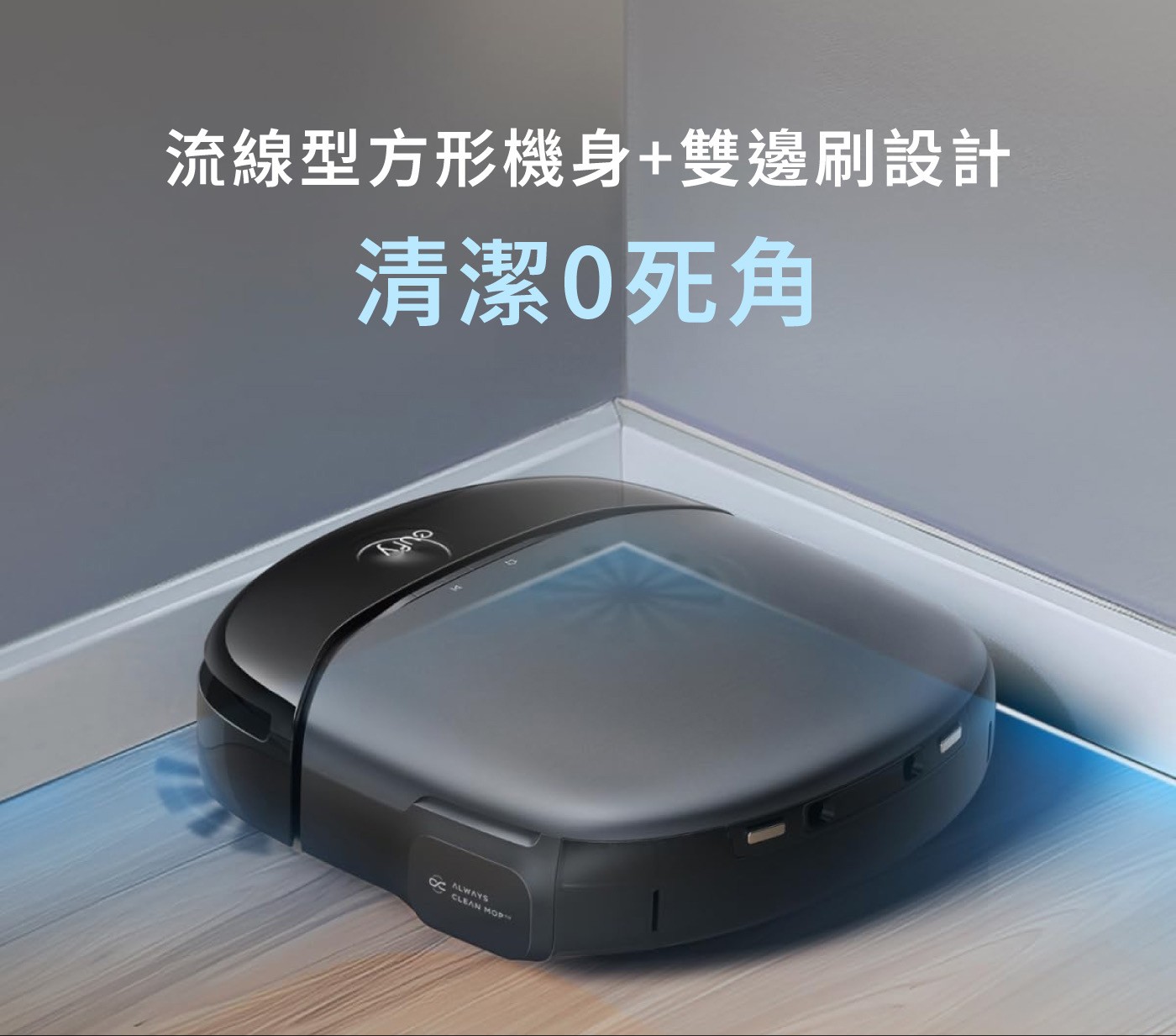- 活水洗地技術,每分鐘自清潔滾筒拖180次,告別傳統圓盤拖以髒拖髒