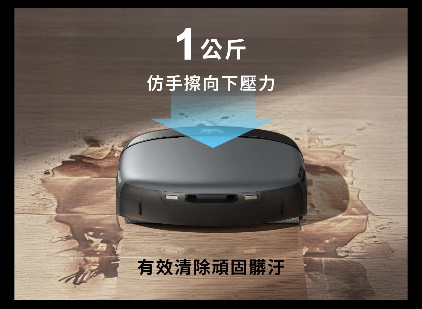 - 搭配1公斤仿手擦向下壓力清除頑固汙垢,及業界最長29cm全覆蓋,達到真正清潔
