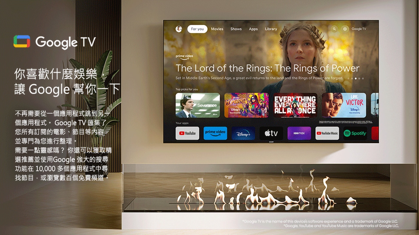 - Google TV連網平台內建Google Play/YOUTUBE/NETFLIX
