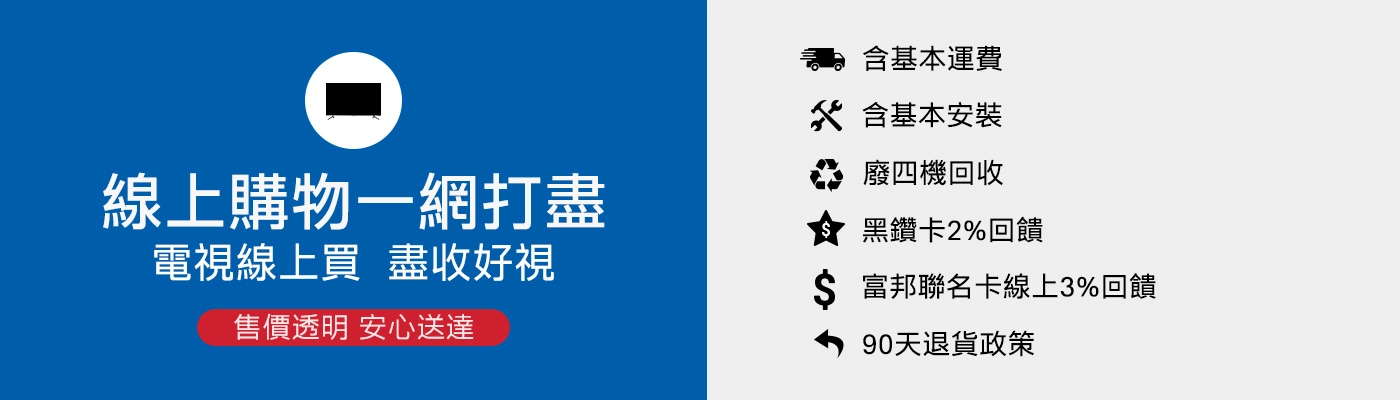 販售多種電視尺寸40-49 吋、50-59 吋、60-69 吋、70吋以上的液晶電視 / 4K 電視,加入了更多的影音功能,例如:內建WI-FI、網路電視盒、4K高畫質、支援 HDR,更能結合網路、連接手機、觀賞網路影片以及手機照片。挑選符合住家坪數的電視螢幕並以物超所值的價格買到高品質的電視機產品,觀賞網路影片、電影、追劇、玩電玩遊戲等,享受更自然細膩的畫面。推薦純粹原色技術,豐富色彩表現的液晶顯示器,為消費者帶來更逼真的觀賞體驗、提供身歷其境、充滿細節震憾音效的環繞家庭劇院組、輕巧不佔空間,劇院級音效,室內外都適用的投影機。推薦人氣品牌: Samsung 三星SHARP 夏普Philips 飛利浦BOSETCLPanasonic 國際牌