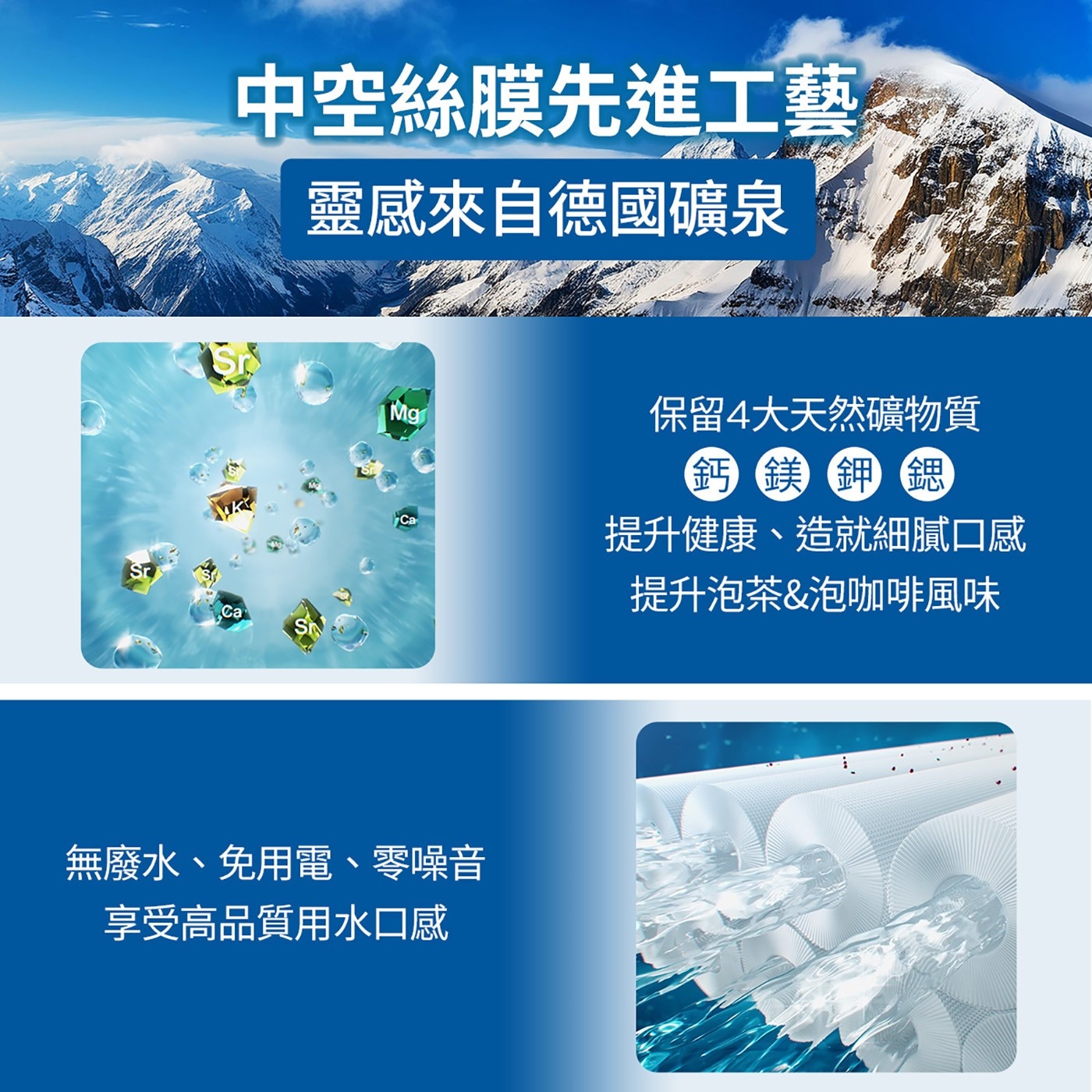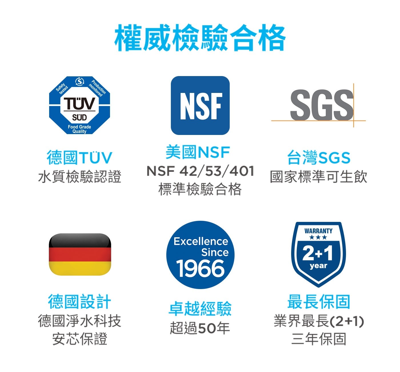 | 材質成分 | [濾芯] PF 濾芯:聚丙烯濾芯 ION-X濾芯:離子交換樹脂和活性碳 CB-UF超濾濾芯:0.1微米超濾中空絲膜和活性碳棒 [瞬熱龍頭] ABS 塑料+304不鏽鋼柱體 |