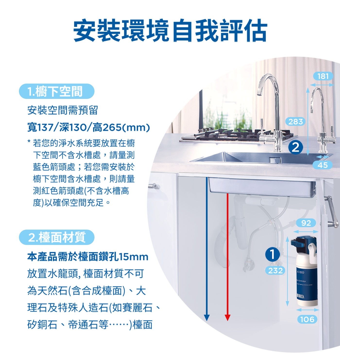 Brita mypure A1 櫥下型長效型濾水系統 (含A1000濾芯二入)