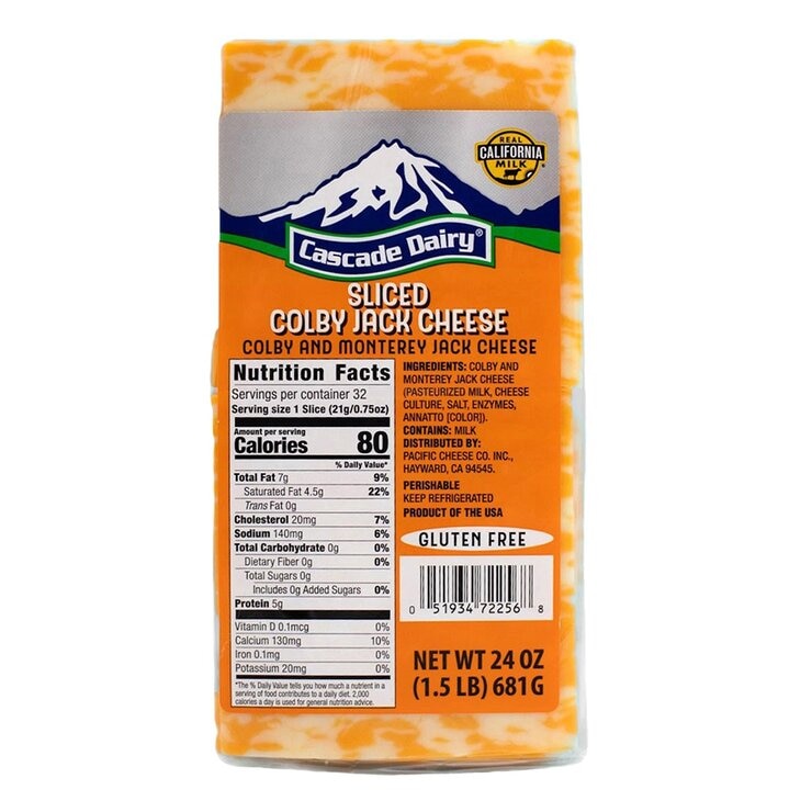 Cascade Dairy Sliced Chilled Colby Jack 681 g