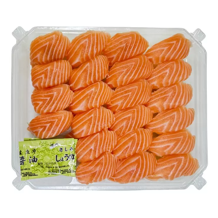 鮭魚生魚片、山葵醬、醬油包、山葵醬包