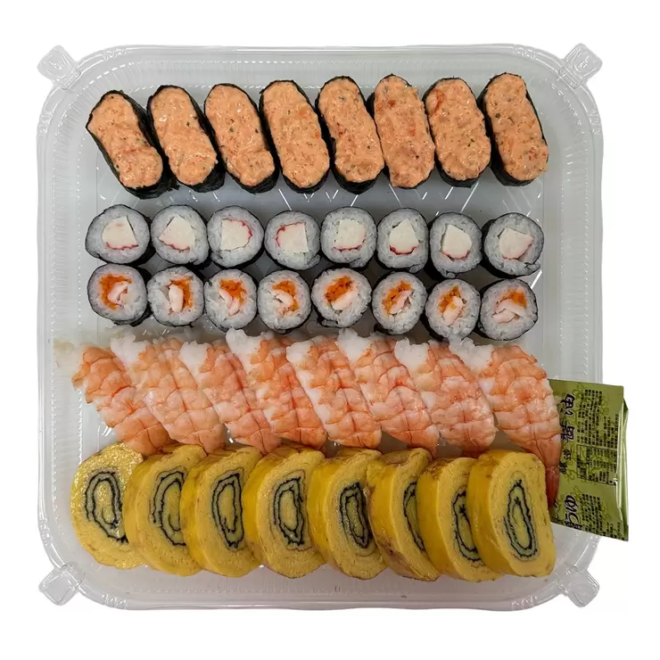 主要食材:壽司醋飯、玉子燒(含蛋、大豆、魚)、