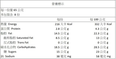 | 內容量/入數 | 65公克 X 8支 |