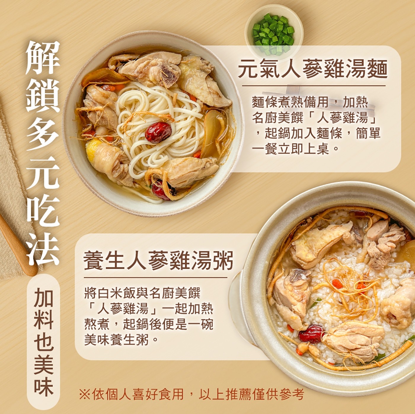 品名 | 名廚美饌 冷凍人蔘雞湯 1200公克 X 2入 |