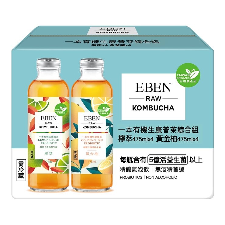 品名 : 一本 有機生康普茶綜合組 檸萃 & 黃金柚 475毫升 X 8入