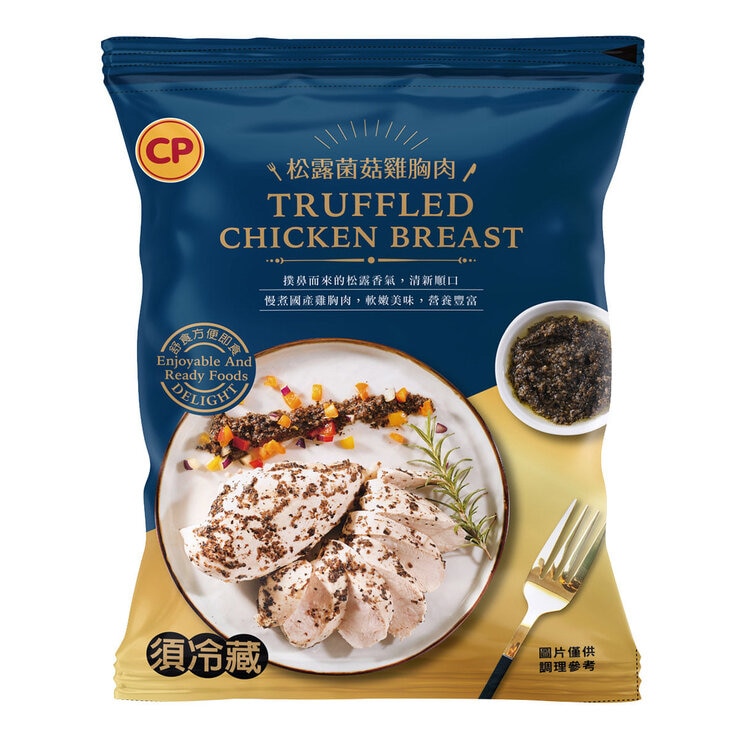 - 精選優質超大雞胸肉,應用特殊按摩技術使雞胸肉軟化入味,再加入義大利黑松露醬增加風味,前所未有好滋味,一試便知。熟製品,立即可食。