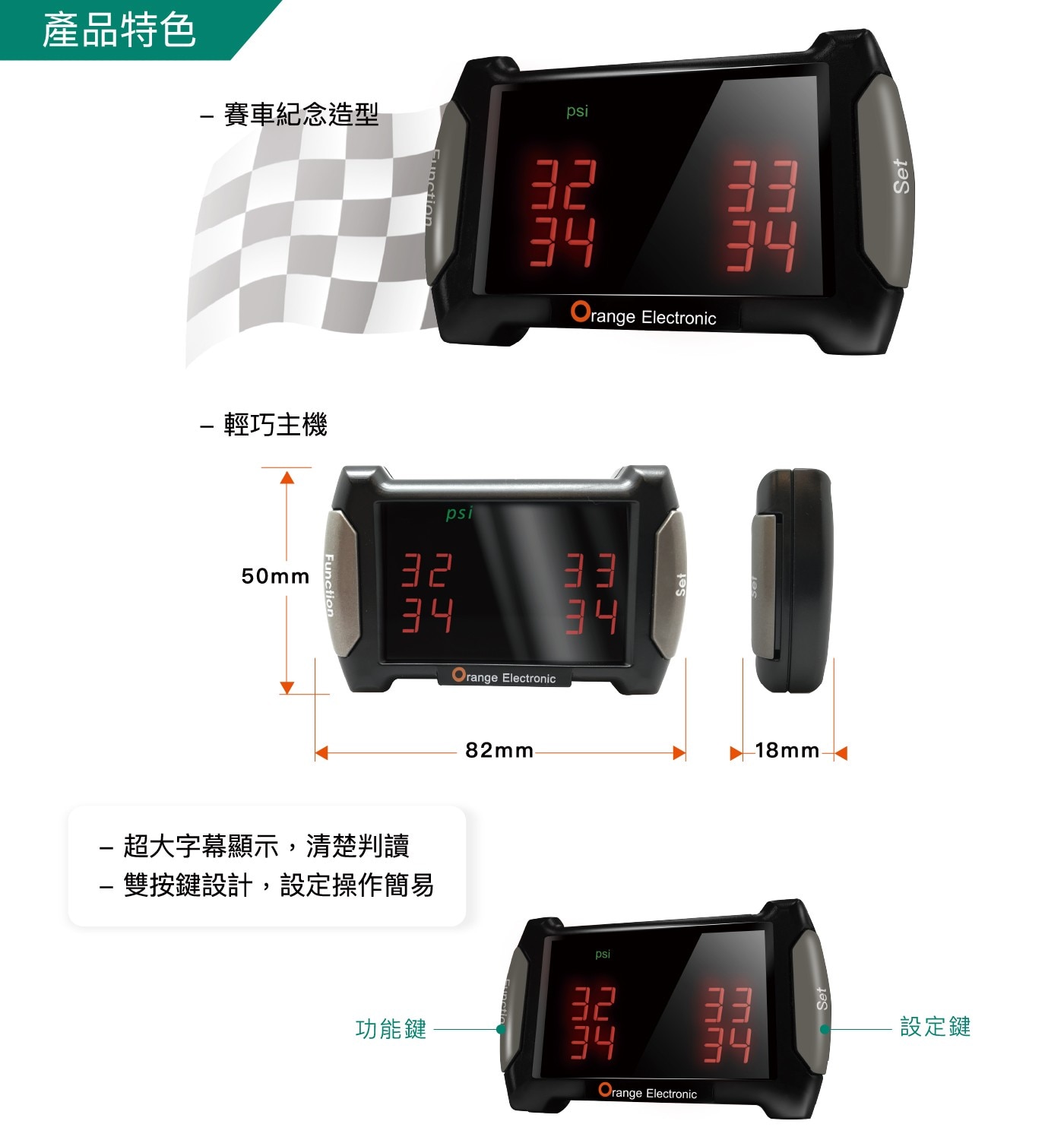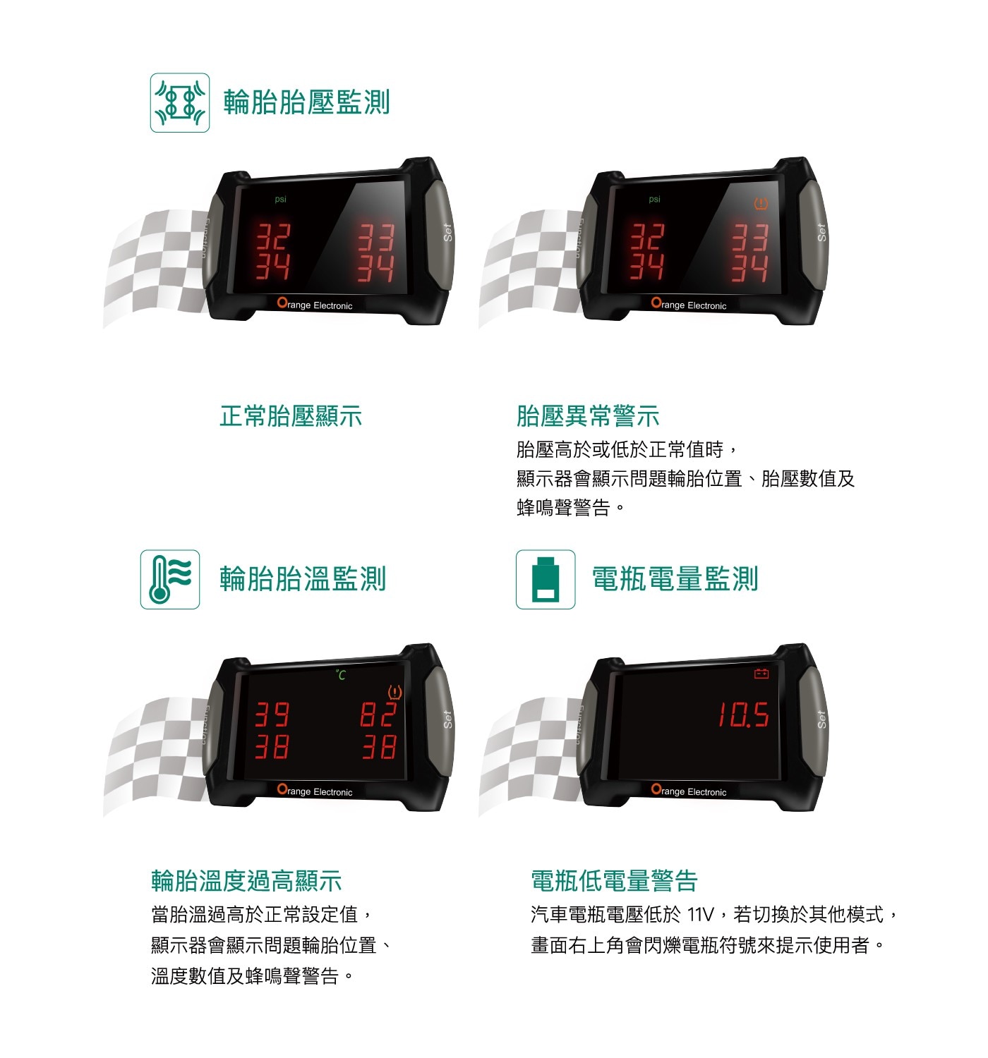 | 品名 | 橙的電子 無線胎壓監測系統 P420A+ |