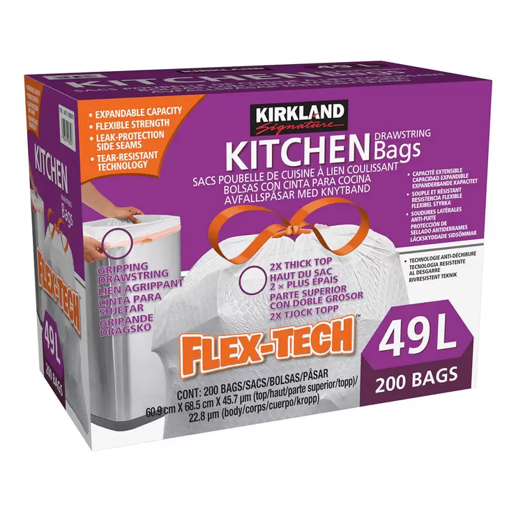 Kirkland Signature Kitchen Drawstring Trash Bags 49 L X 200-Count